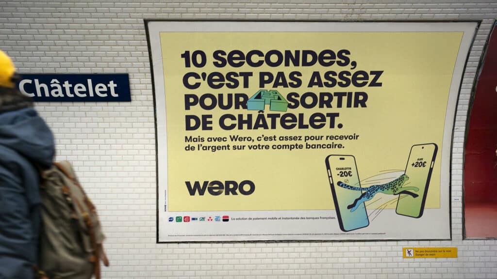 « Si 10 secondes, ce n’est pas assez pour beaucoup de choses, c’est suffisant pour envoyer/recevoir de l’argent avec WERO », voilà le positionnement stratégique. Autrement dit, il s’agit de transformer une preuve technique (“10 secondes de compte à compte”) en totem de marque. Une idée simple, mémorable et universelle. La création publicitaire reposait sur 9 films de 20 secondes parodiant des programmes TV célèbres (Émission Culinaire, Télé Réalité, Comédie Romantique,…) afin d’illustrer le concept. Avec une signature humoristique : “I need a WERO!” sur fond musical reconnaissable. La campagne média s’est déclinée de façon omnicanale, en TV & VOL, diffusée dans les créneaux précédant les émissions détournées, mais aussi avec un affichage ultra-contextuel (80 accroches adaptées à chaque emplacement) mais également événementiel (bâches, covering) dans les grandes gares et espaces urbains (“10 secondes, ce n’est pas assez pour sortir de Châtelet.”) et sur les réseaux sociaux avec des parodies d’influenceurs (tutos, unboxing, etc.) en 10 secondes. L’activation du CRM et de campagnes bancaires avaient vocation, dans le même temps, à accompagner la migration de Paylib vers WERO. Enfin, la campagne s’est appuyée sur un sponsoring marquant de Koh-Lanta avec Denis Brogniart.
